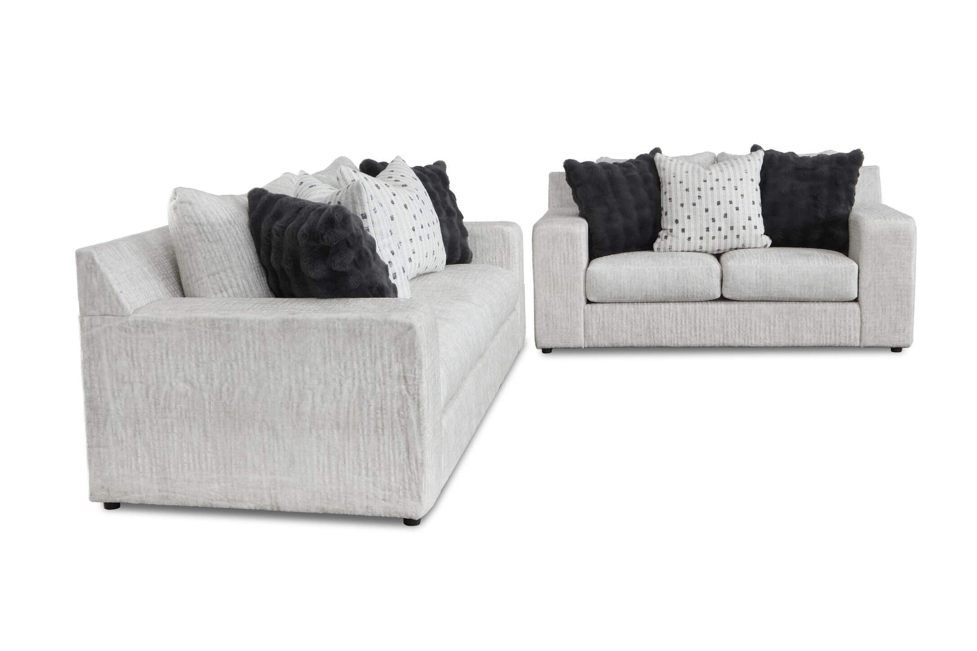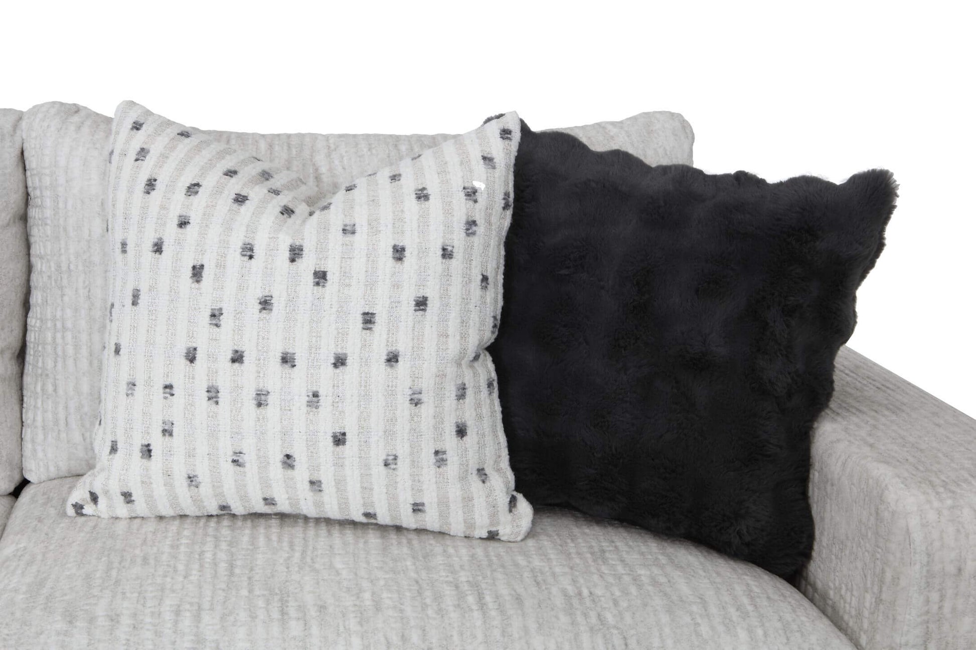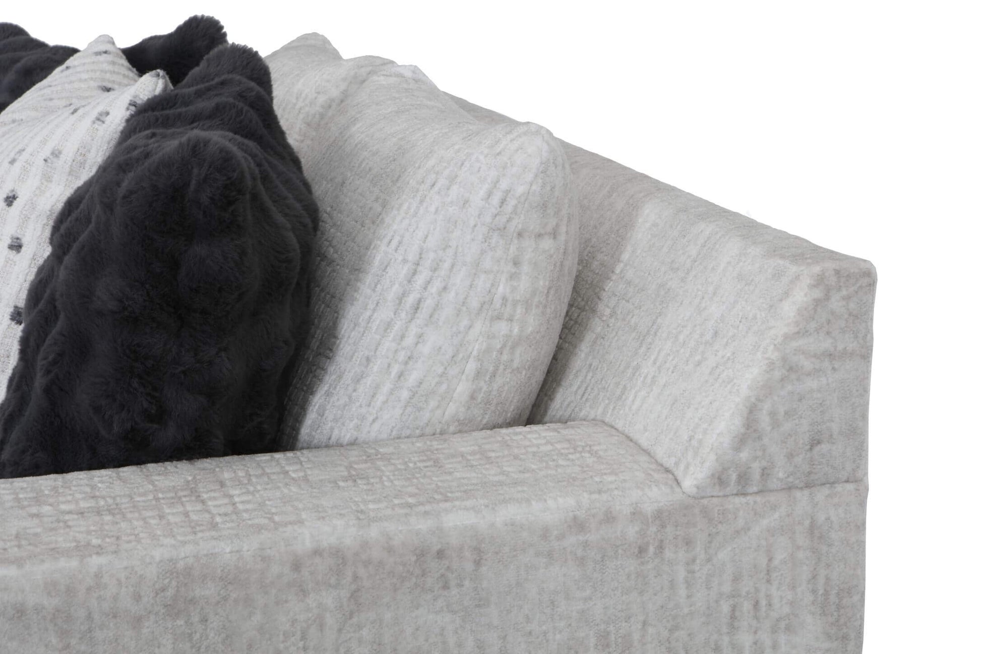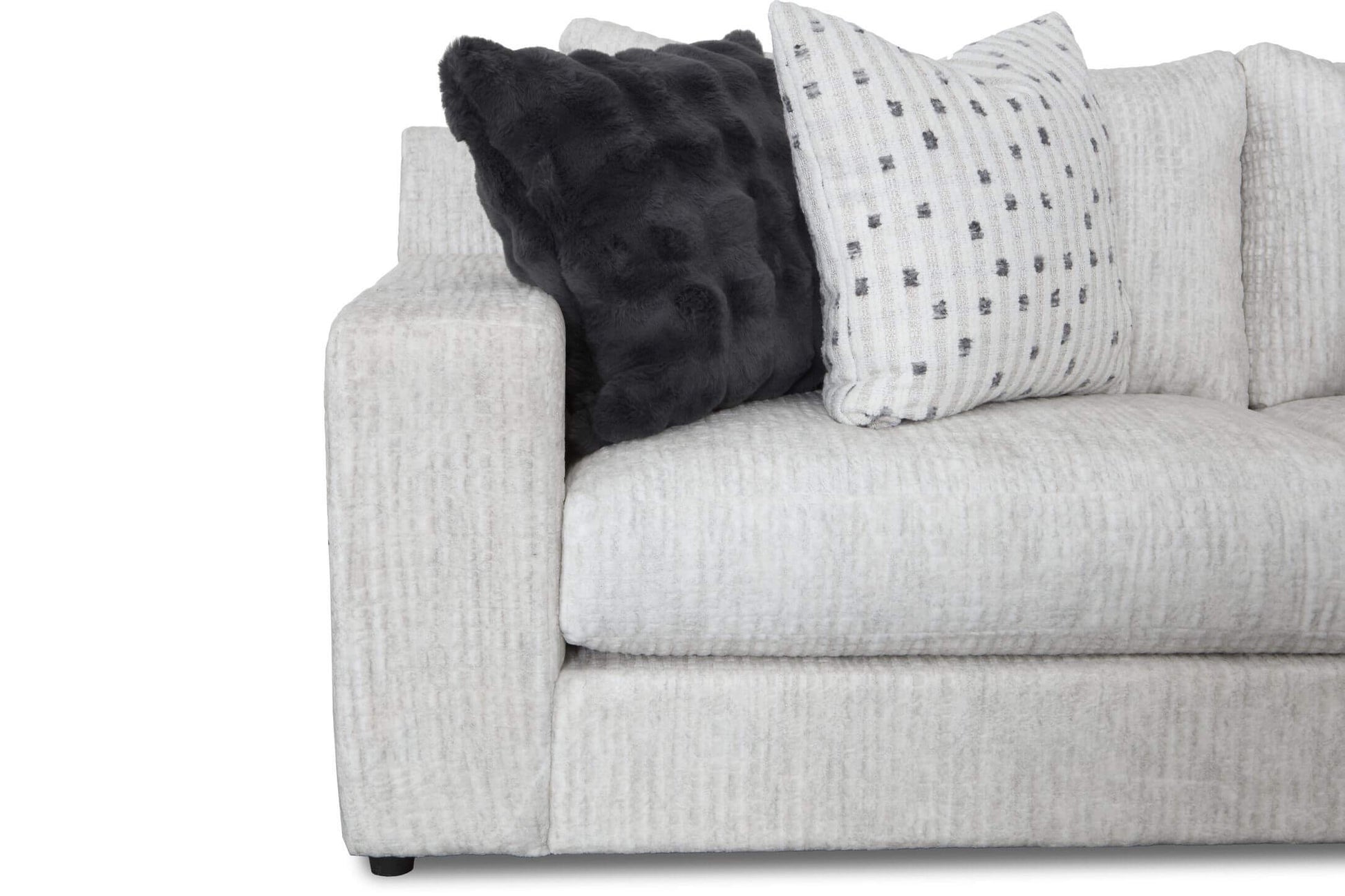 This sleek furniture collection is upholstered in the striking —a uniquely textured material that provides both a sophisticated look and a cozy feel. Its versatile color allows it to blend seamlessly into any décor, while its texture makes a quiet, modern statement.