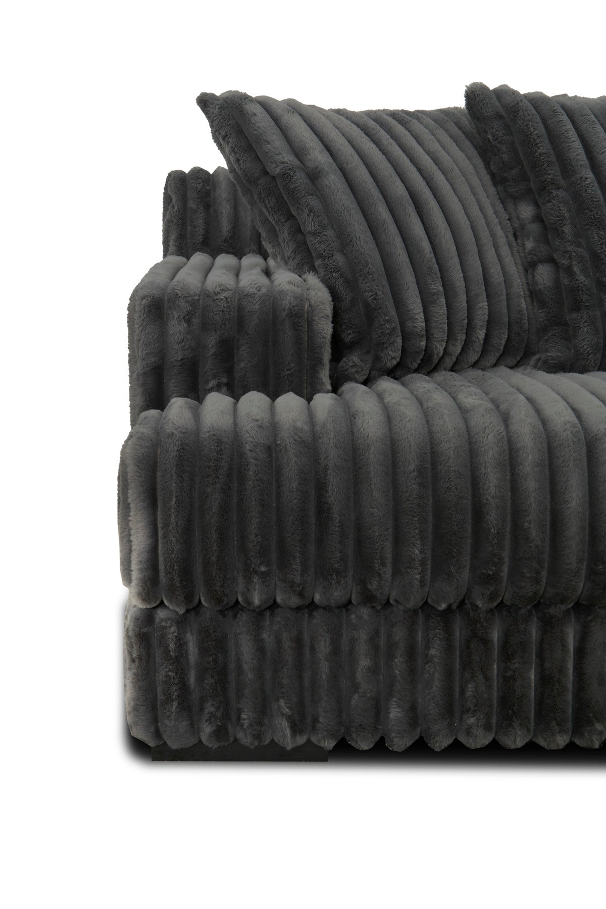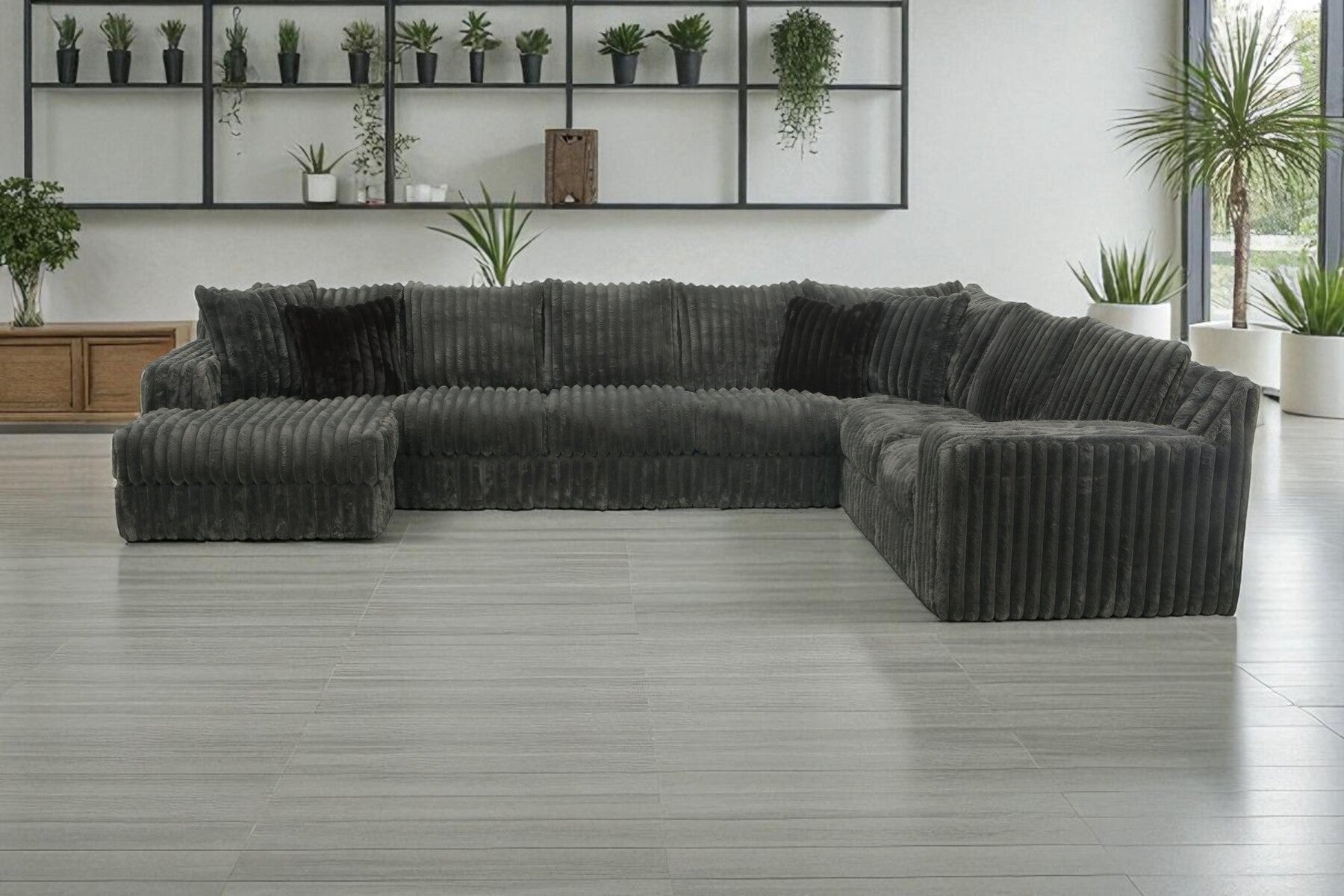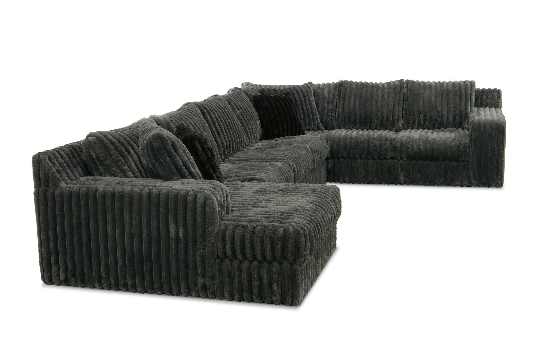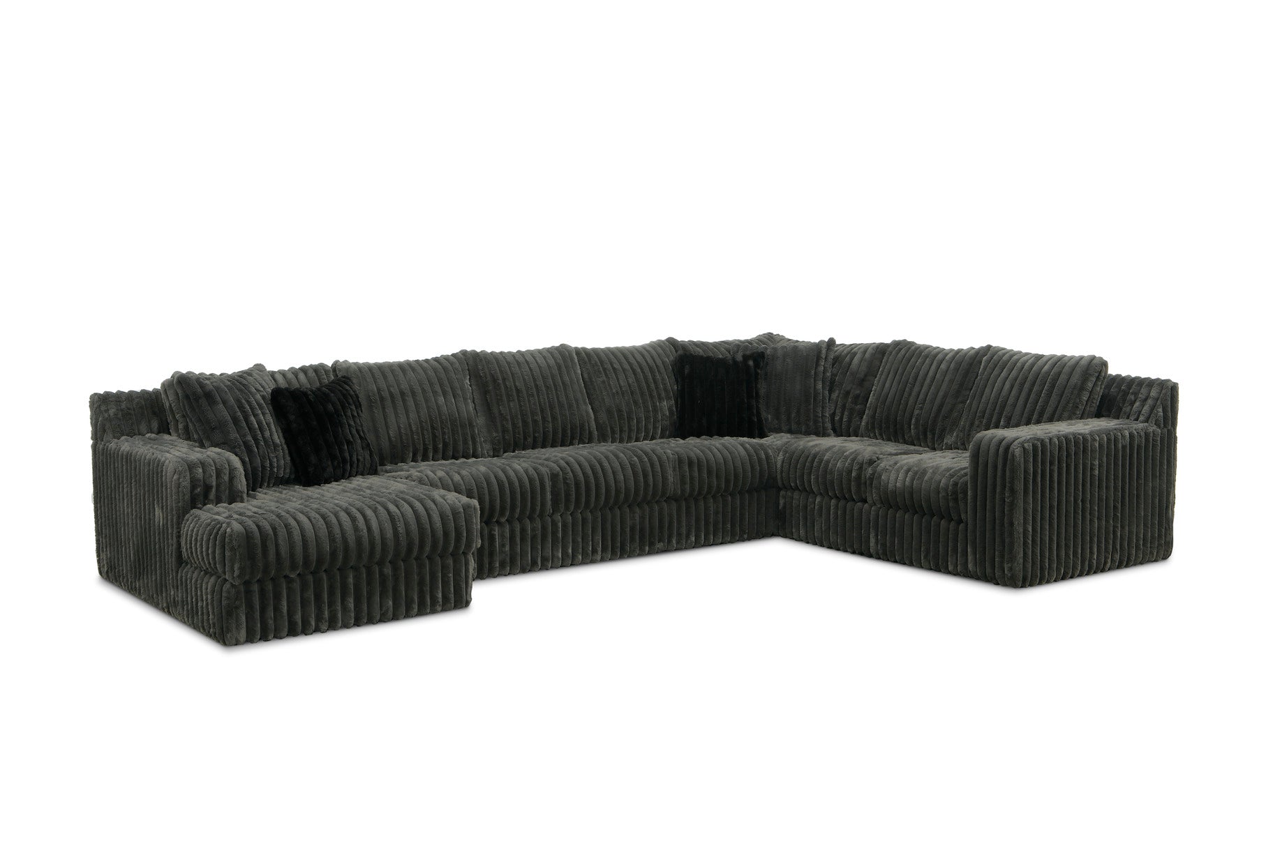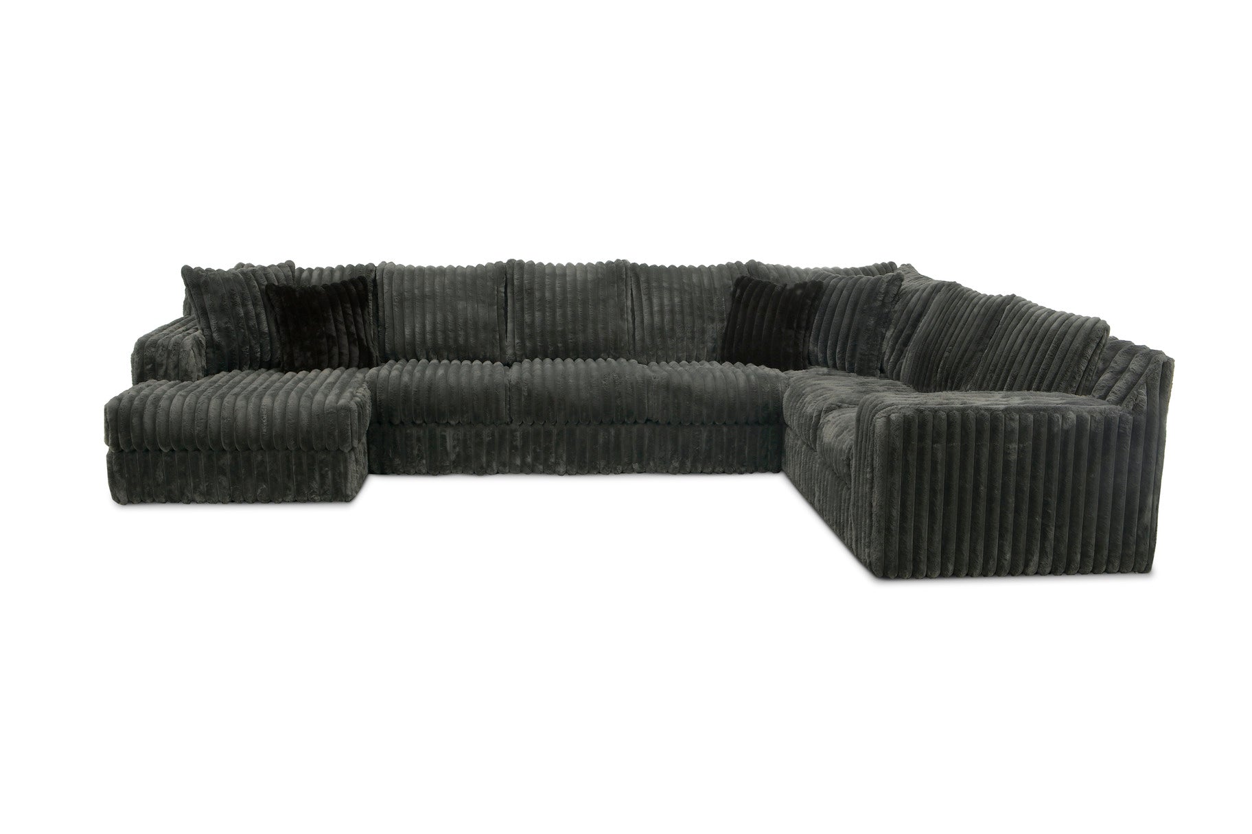 Upholstered in the distinctive Mondo fabric, this sectional features a bold, wide-wale texture that offers a cozy, plush feel and a high-impact, contemporary look. Its massive size and clean-lined TUX arms make it the ultimate centerpiece for large homes and serious lounging.