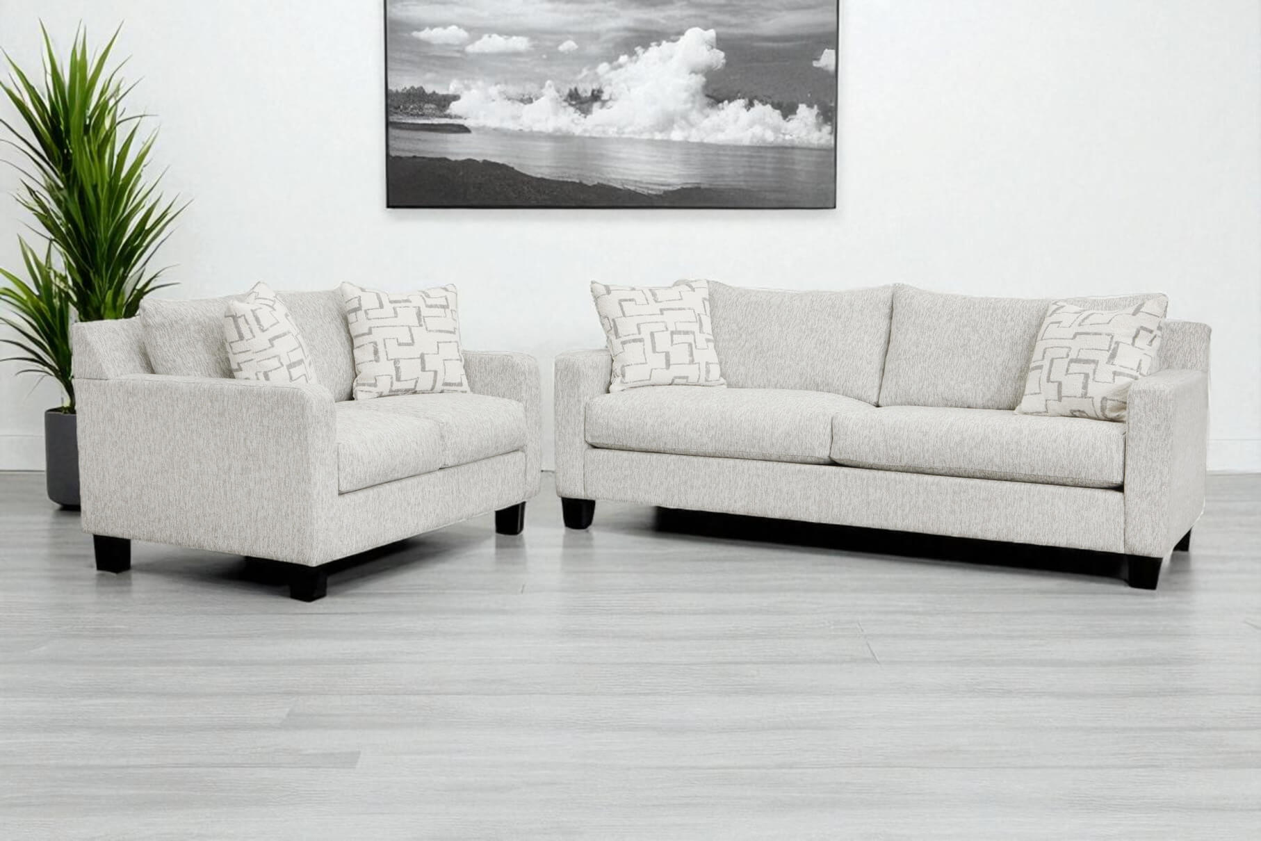 Upholstered in Utopia Dove, a beautiful, light grey textured fabric, this L-shaped sectional brings a bright, versatile, and contemporary look to any room. Its tailored, clean-lined silhouette provides a chic backdrop for both relaxation and entertaining.