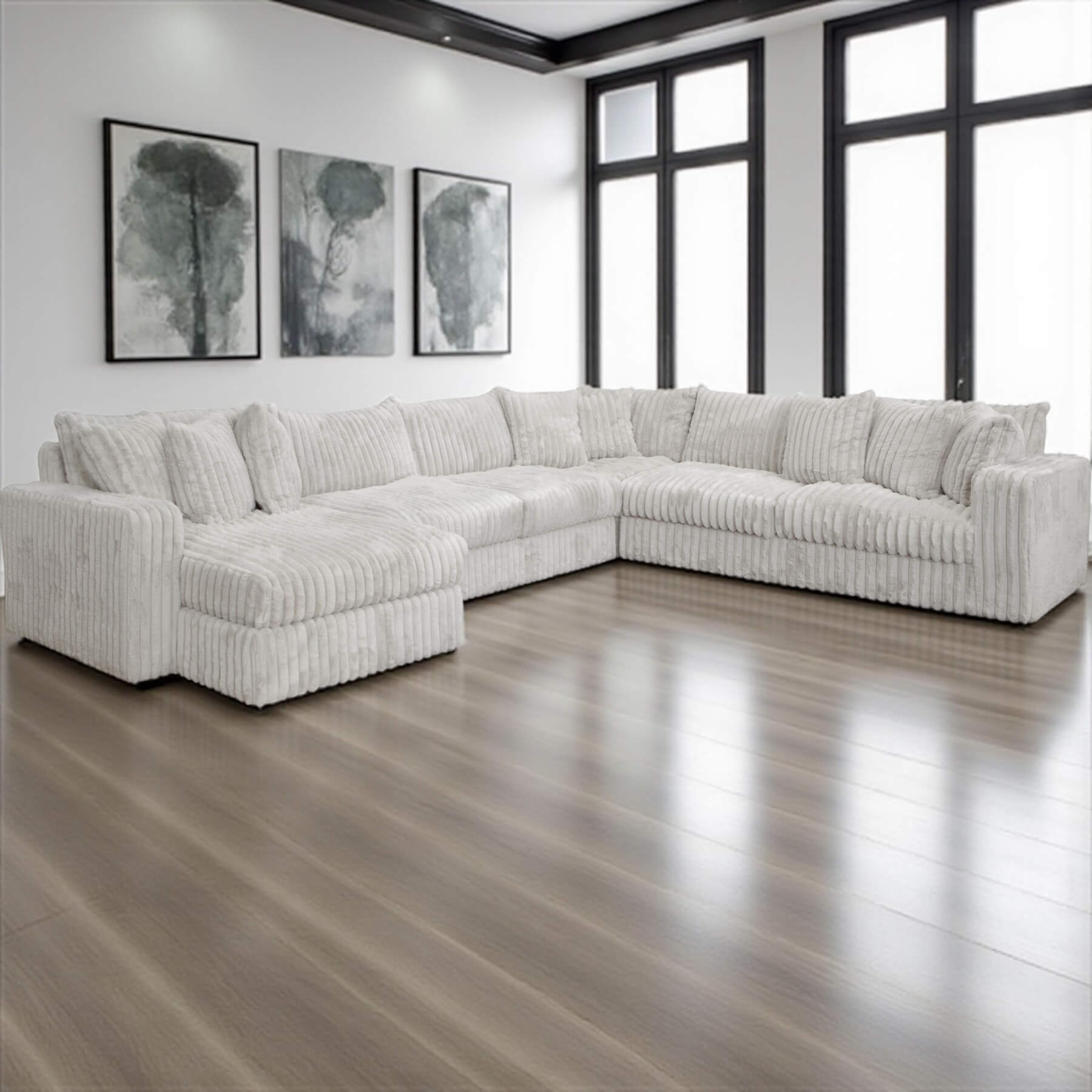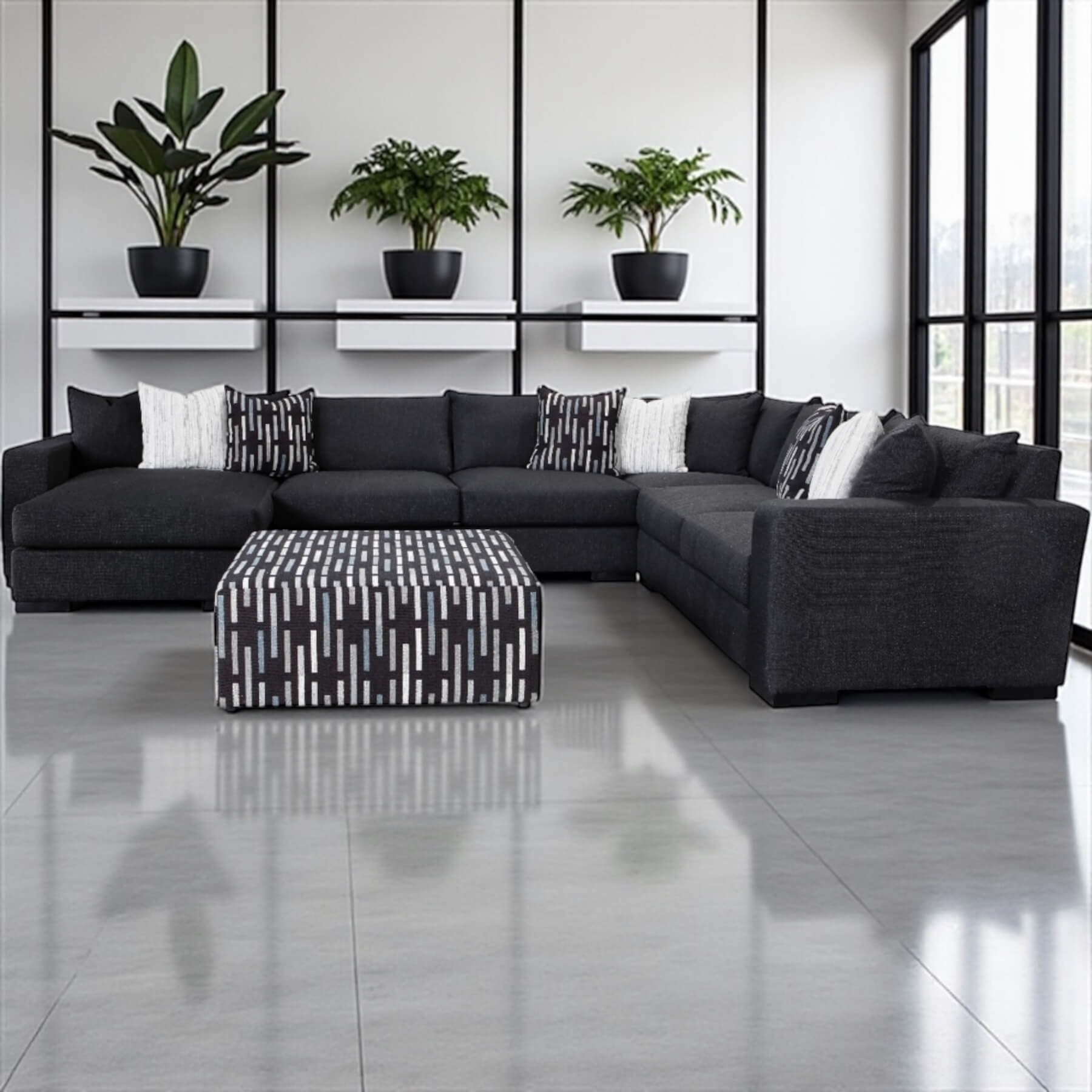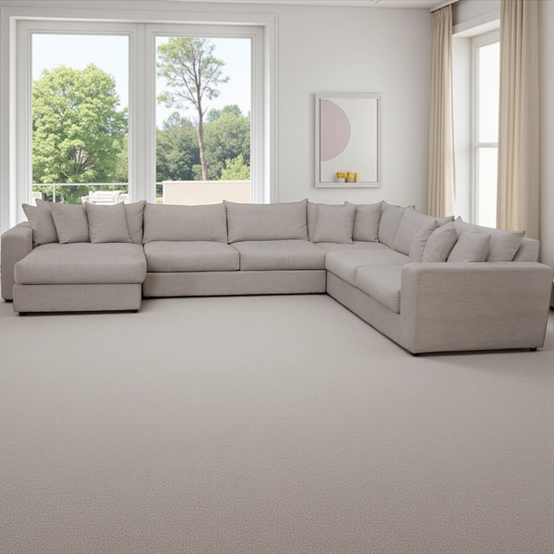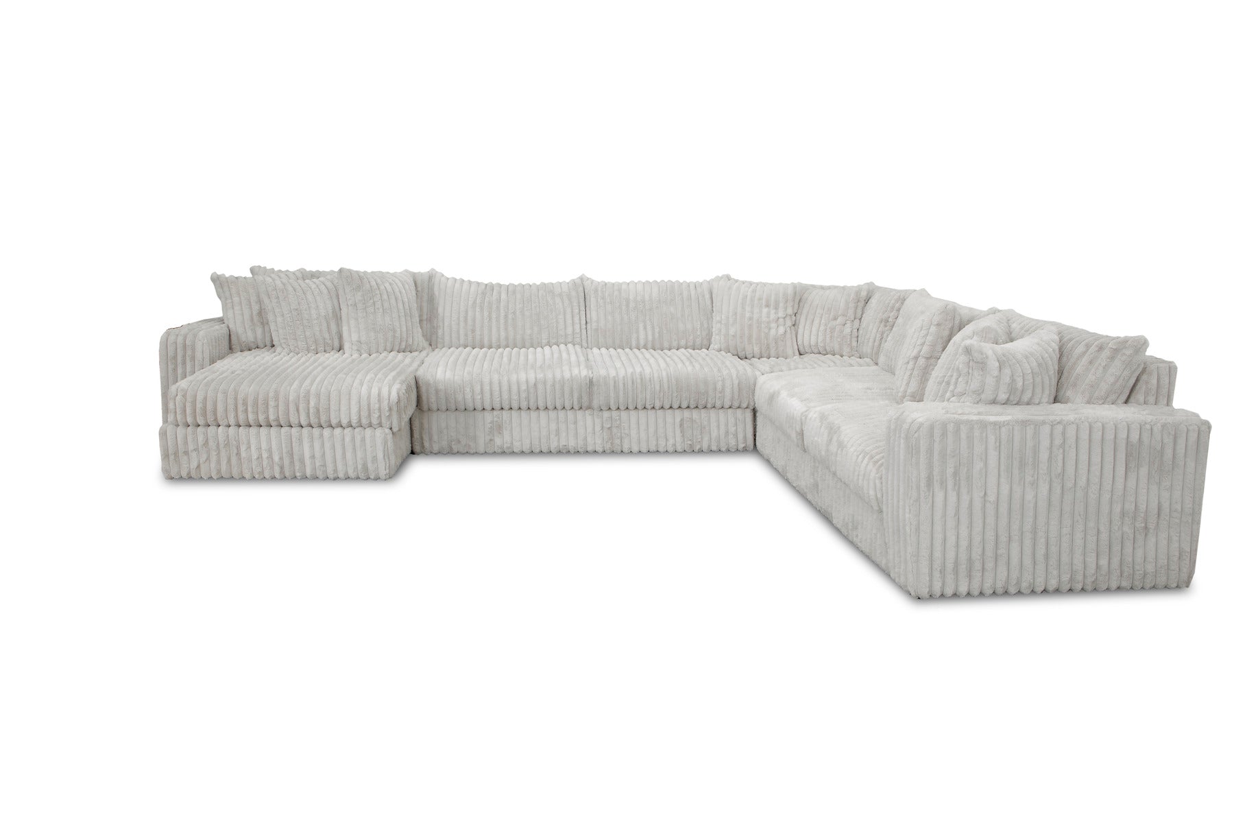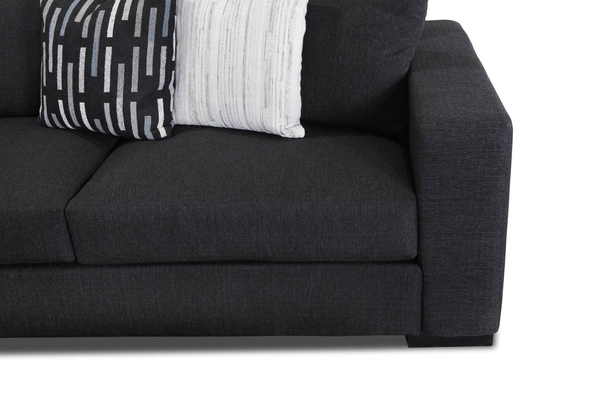 - Filling: Feather blend seating, back pillows and accent pillows.
