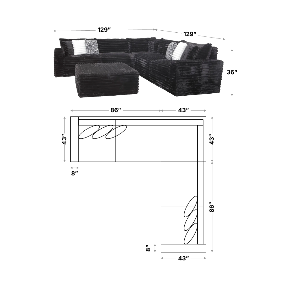 | 3pc sectional | 130 in. | 43 in. | 31 in. |