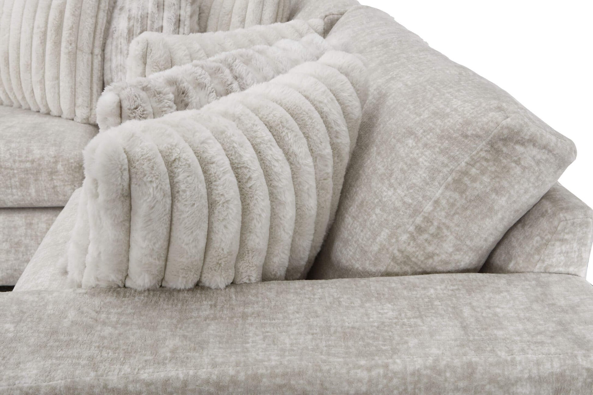 - Filling: Feather blend seating, back pillows and accent pillows.