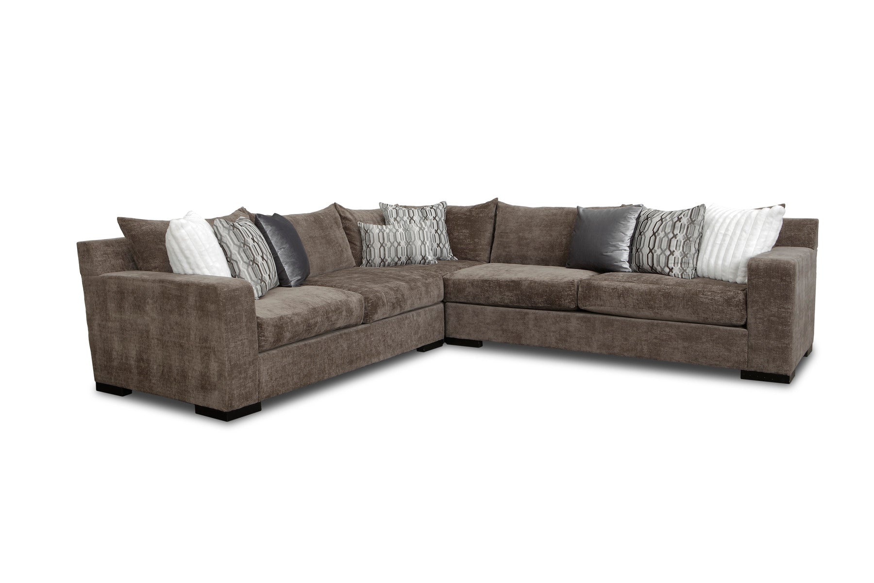 This beautifully tailored L-shaped sectional, upholstered in the warm, inviting Verona Ash fabric, brings an earthy, elegant neutrality to any living space. Verona Ash is a rich, medium brown-grey with a soft texture that immediately makes the room feel cozy and upscale.